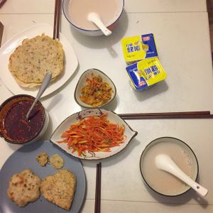 配着豆浆吃着豆渣饼就点小菜就是早餐啦