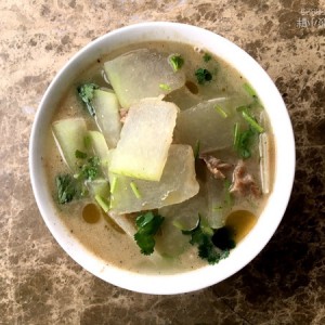 1 锅中加入冬瓜片翻炒,为避免冬瓜炒糊,适当加一点热水。2 翻炒一会儿,加入炒好的羊肉片,加一片姜,倒热水没过食材,大火煮开转小火煨。3,汤中加一勺盐(要根据食材和水的多少适度放盐),加一点点鸡精。