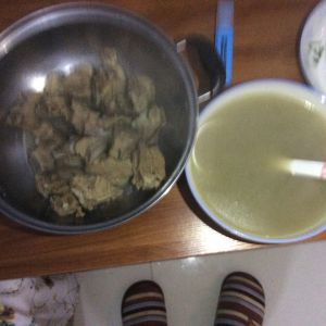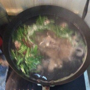 现在是用焯好的排骨加水 盐 葱绿 和10个花椒煮排骨 煮20分钟闷盖水要末过排骨。1是为了排骨熟,2是为了排骨高汤为下面做准备