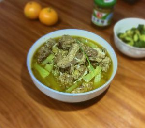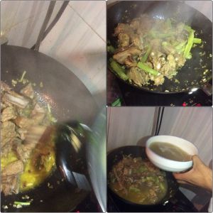 加入排骨炒 小火慢炒一会 加入一勺生抽 把底料的香味炒入排骨里。加入莴笋炒一会就加入高汤了。加入汤后汤不要过多能煮下排骨就好 加大半勺鸡粉 不用加盐了 因为汤里就有盐 如果你放的盐少还可以在加点盐。煮五分钟 让锅中所有调料和汤充分融合就可以吃了