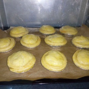 将榴莲馅放入蛋挞皮中至8分满,在表面刷少许全蛋液烤出来会更漂亮