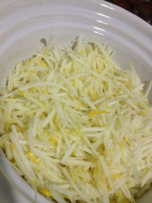 擦成丝状,或切粒都行,很大的柠檬香味,放进电炖陶瓷锅。