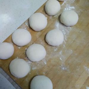 准备好面粉,哮母用热水35度化均。蜂蜜到入水中搅匀。和面!发面两小时如图1,就行。