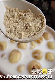 加入加热后的莲子,一勺美白杏仁粉,搅拌均匀即可。
