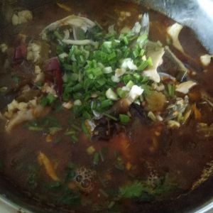 放下了鱼骨,我们就可以放金针菇了,等金针菇差不多熟了我们鱼头也熟了。