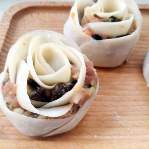 蒸好以后的玫瑰花饺子,根据各人口味,用一点调料蘸着吃。