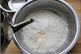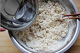 面粉中倒入热水