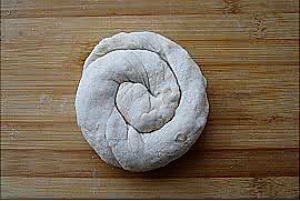 然后将面卷盘起来