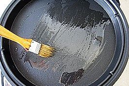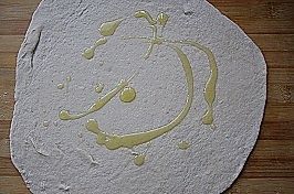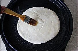 放入面饼,在面饼表面也刷层油