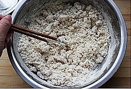 分几次加入凉水和成不黏手的面团,一旁醒制30分钟