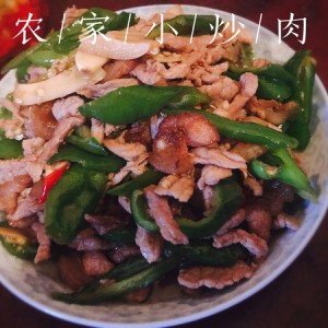 锅热好,加入一点点油,加入肥肉,把肥肉的油煎出2/3,加入瘦肉,翻炒,加入盐,蚝油,一半蒜子,翻炒,炒至肉熟,出锅!锅内剩的油用来炒辣椒啦~