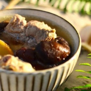 电饭煲洗净倒入五分之三的清水,将所有食材倒入,前面泡发香菇的开水也一并倒入(电饭煲煮汤特别适合懒人)。