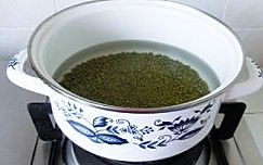 先将绿豆洗净,放入锅中加水,用中火煮至半熟