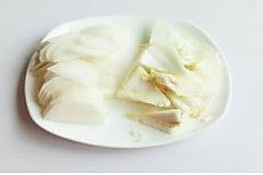 将白菜胆、白萝卜洗净,切成片