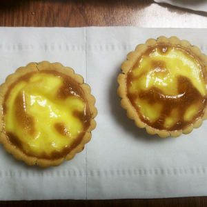 把挞皮的面团平均分成8分,装进模具,倒入挞液