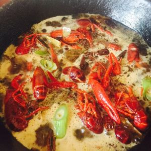 洗刷干净的小龙虾放入锅中煸炒2分钟,把食材倒入锅内一同翻炒待出香味倒入热水,开锅后小火炖40分钟即可