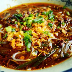 5.红薯粉出锅撒上葱花、熟花生碎、榨菜搅拌均匀即可食用