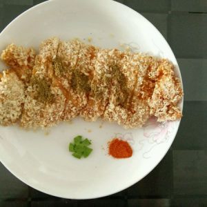 鸡排在蛋清里蘸一下,再裹上面包屑,我用的是白面包屑,油烧至4成热,下锅炸,小火炸2面金黄色即可。