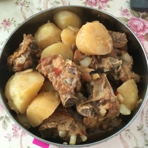 加入水,大概刚刚没过土豆(我加的多了一点,儿子喜欢汤)煮开。然后转到高压锅。压十分钟左右。