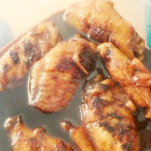 鸡翅解冻,焯水,滚水30秒,取出斜刀斜横道,每面俩道,放在大碗里,然后放姜丝少许,蒜段少许,可乐半没过鸡翅。腌制五分钟。
