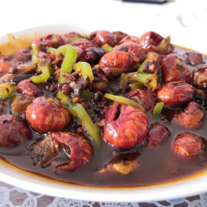 开锅后转小火炖15分钟左右,之后转大火收汁。放入切好的青椒丝翻炒即可出锅(用香菜在盛入盘中后放)。
