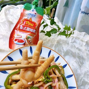 煮好的鸡爪用凉水洗五六次直到水变清,倒进冰水里放冷藏半小时