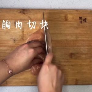 腌制好的鸡肉里放入淀粉,加入豆油。搅拌均匀