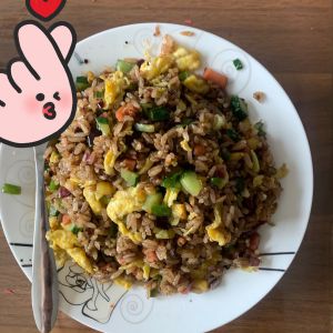4.在翻炒大米时加入老抽少许和黑胡椒和白胡椒