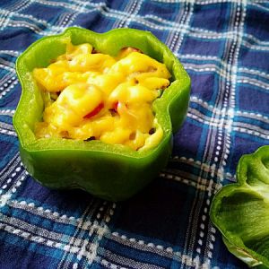 浓浓芝士香的青椒盅焗饭能量早餐。