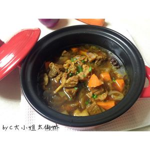 加入洋葱和胡萝卜继续炖15分钟,然后大火收汁即可