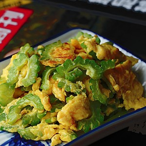 苦瓜切开 挖去瓢籽 洗净切片 用热水焯一下 挤干水分待用。