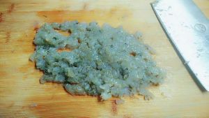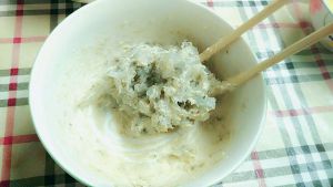 虾泥里放胡椒粉、盐、淀粉,蛋液搅拌均匀放5克左右,可以慢慢加。