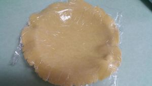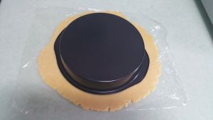 我用的是披萨盘,直径为19cm.塔皮擀完大出披萨盘3cm左右。
