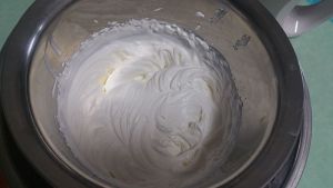 打发到有奶油有清晰纹路,不流动。