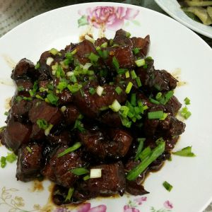 8.待汤变少时,加入盐,鸡精翻炒三分钟入味,转大火翻炒收汁,盛盘,撒上切好的香葱,就可以享用了。