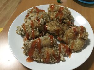 煎好后淋上泰式甜辣酱,非常好吃!也可以根据自己的喜好沾沙拉酱或其他酱料。适合老人和孩子。