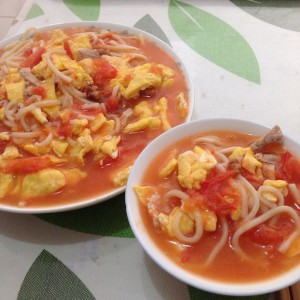 面条熟了后就可以出锅了(吃鸡可以加一点,但不能太多,鸡蛋本身就有鲜味,所以鸡精和鸡蛋其实不太适合)