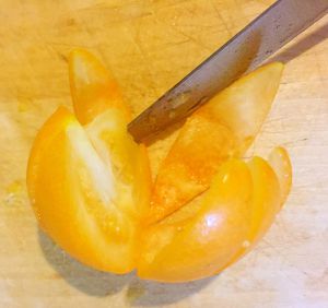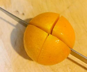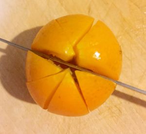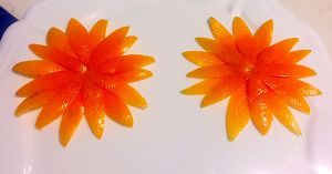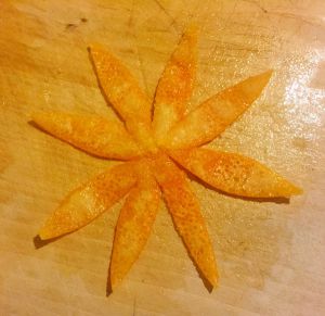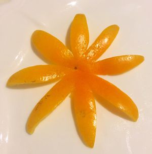 将两个金桔皮错位的摆在一起小花就更加鲜美喽