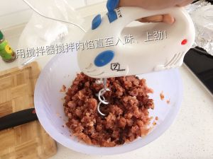 用搅拌器搅拌至入味、上劲,可以手动搅拌