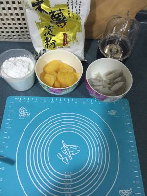 将红薯和香芋切片放入电蒸锅,蒸25分钟取出。放入料理机搅拌成泥