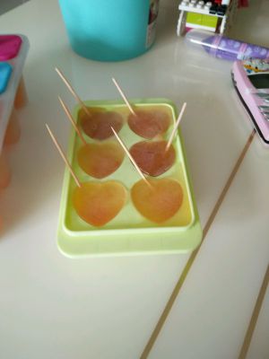 放到冰糕盒里,里面倒上果汁,冻到冰箱