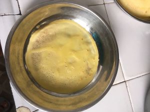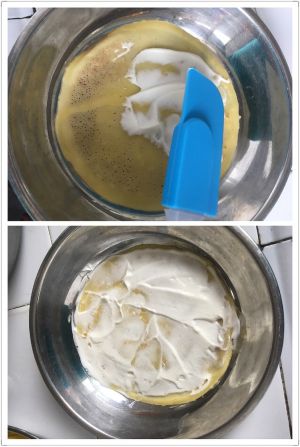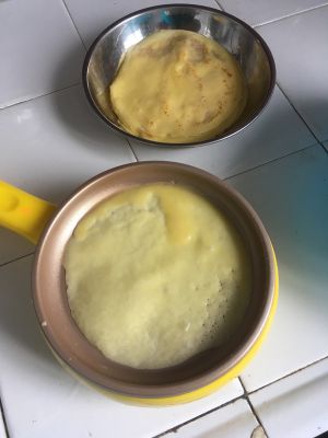 一勺面糊煎一张饼皮,全部煎好就可以做蛋糕了