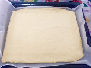 取适量的面团擀成长方形,然后进行第二次发酵。