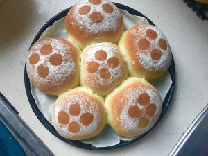 冷却肉松面包的时候,又去烤了豆沙包,嘿嘿!