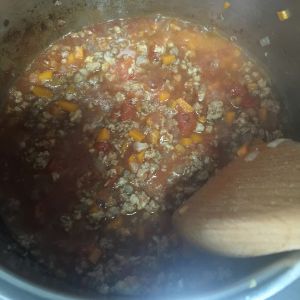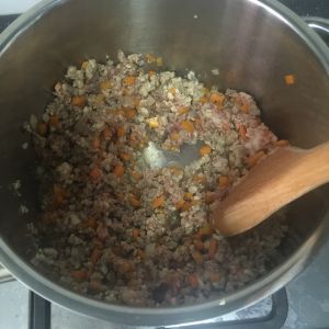倒入新鲜番茄酱翻炒,调到小火熬肉酱.隔15分钟翻炒下,大约熬45分钟左右,中通切勿加水!
