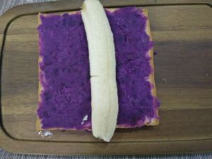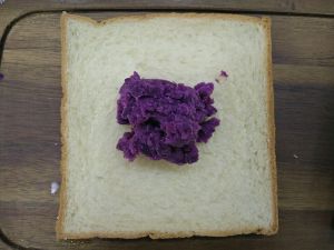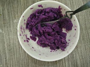 紫薯蒸熟捣成泥状,根据个人喜好可以加适量白糖