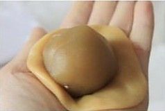 把饼皮摊开,包入莲蓉馅