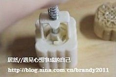 直到不能再往下压为止,记住要四个方向受力均匀,要不印出来的月饼会一边高一边低啊