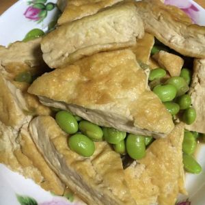 差不多5分钟后,水有点收干,毛豆酥了,即可出锅