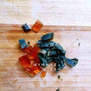 把蛋清倒出一点,然后把皮蛋粒装进去